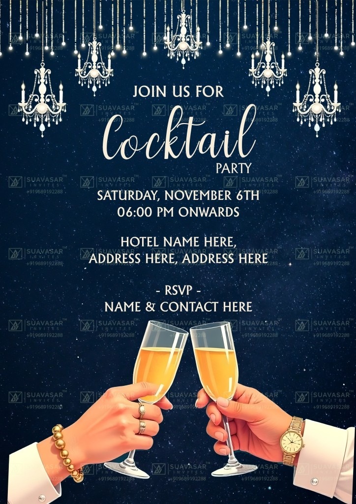 Transform your celebration into an unforgettable experience with a touch of modern convenience and timeless elegance. Order now and let the anticipation build as your guests receive this enchanting invitation, a delightful prelude to the spectacular cocktail party that awaits them.