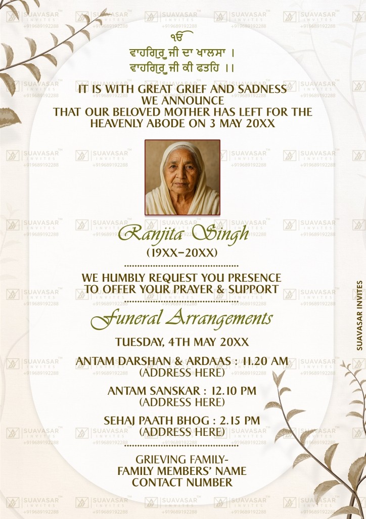 Sikh Funeral Invitation Ecard 10