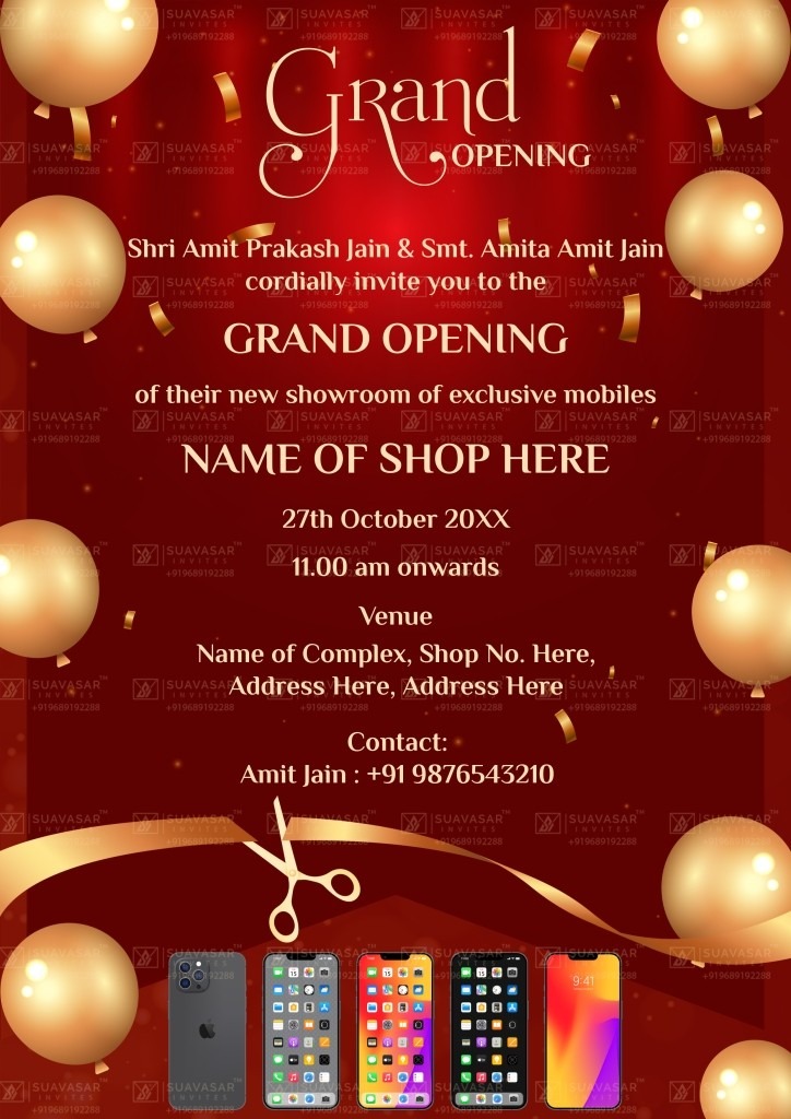 Stylish Mobile Shop Opening Invitation Card 05